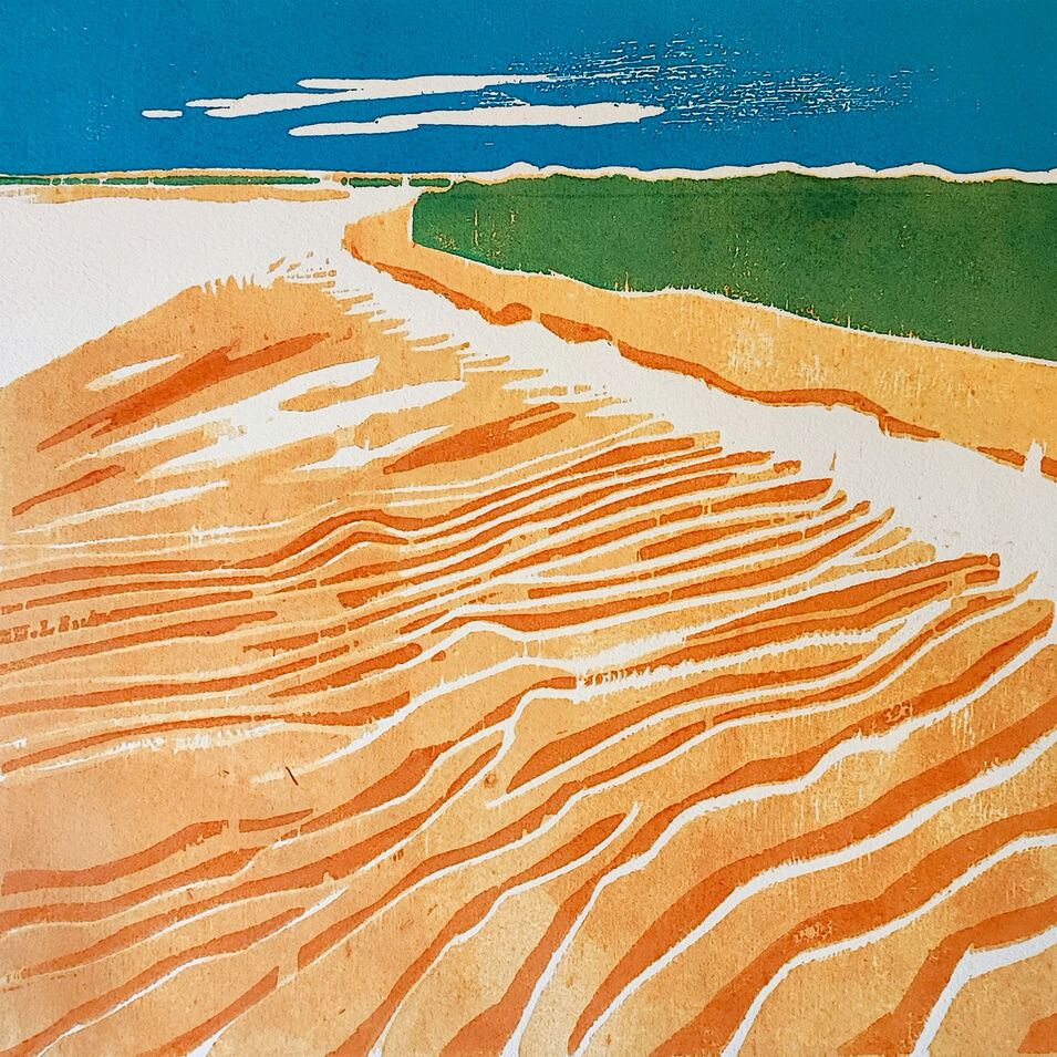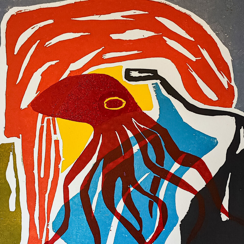 Dieser Kurs behandelt die Arbeit an einem Holz-Schnitt mit mehreren Druck-Stöcken, die gedruckt ein ganzes Bild ergeben.