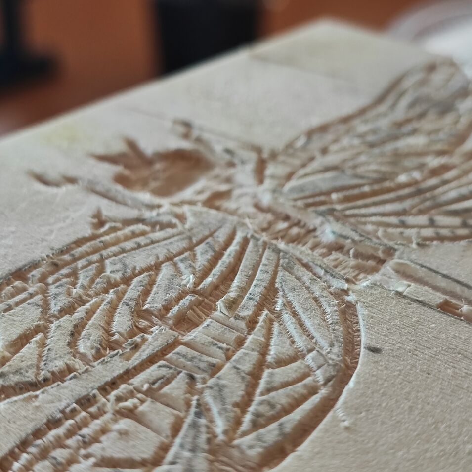Oder: Das Schneiden in eine Linol-Platte.