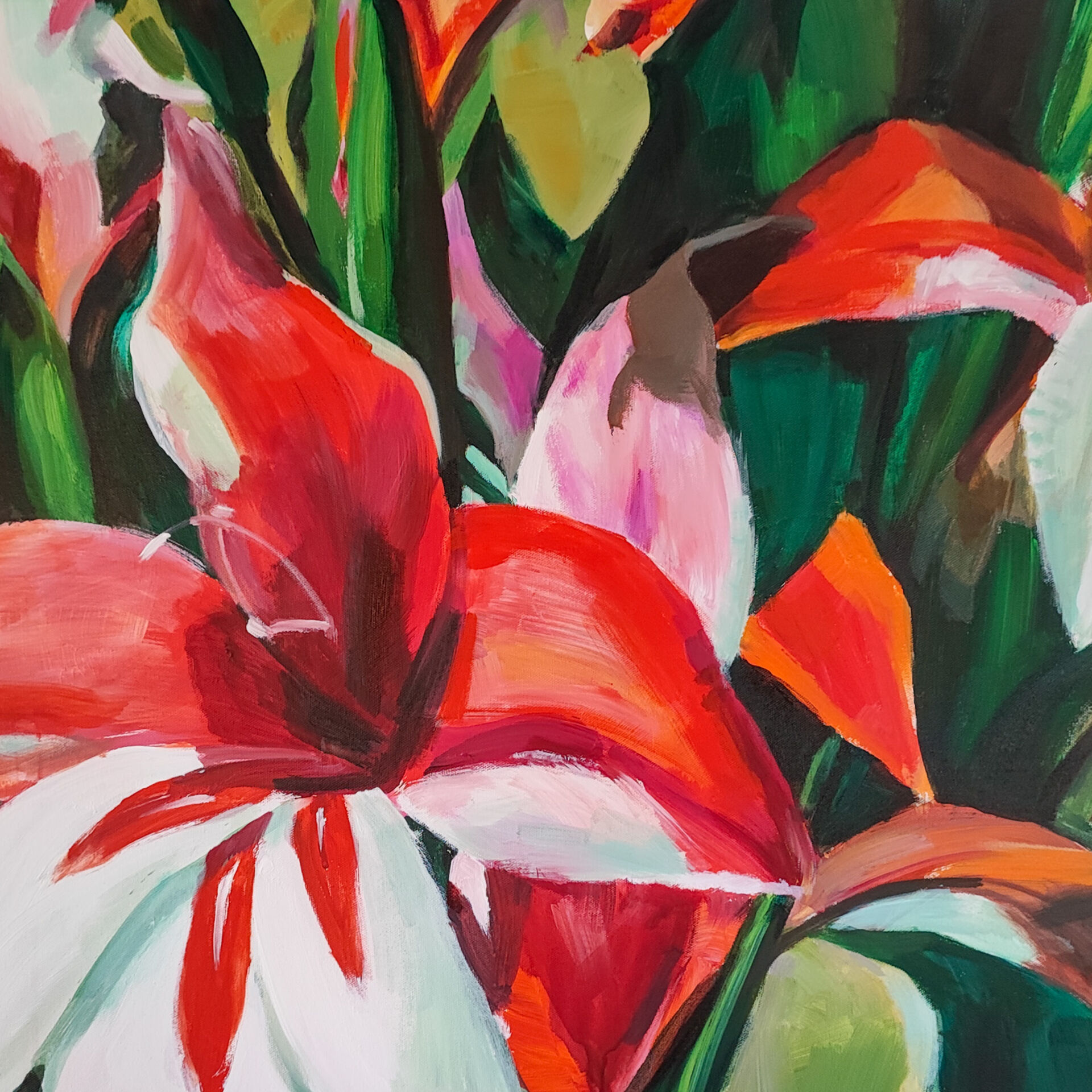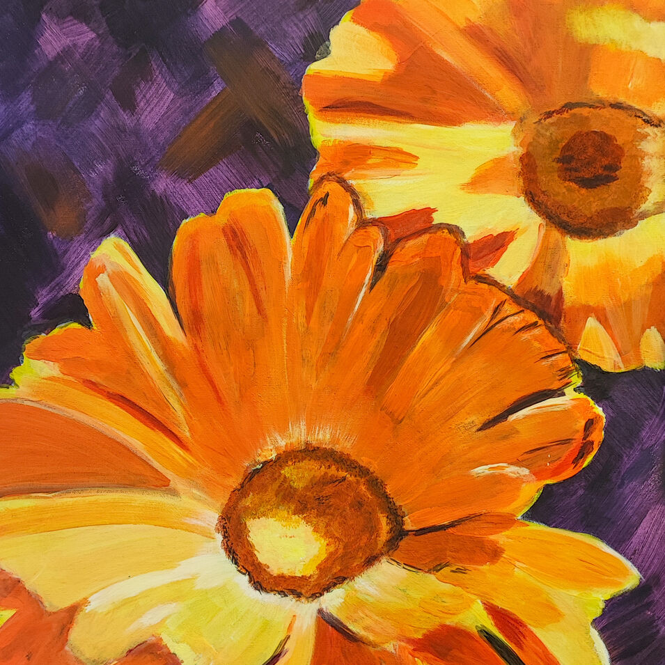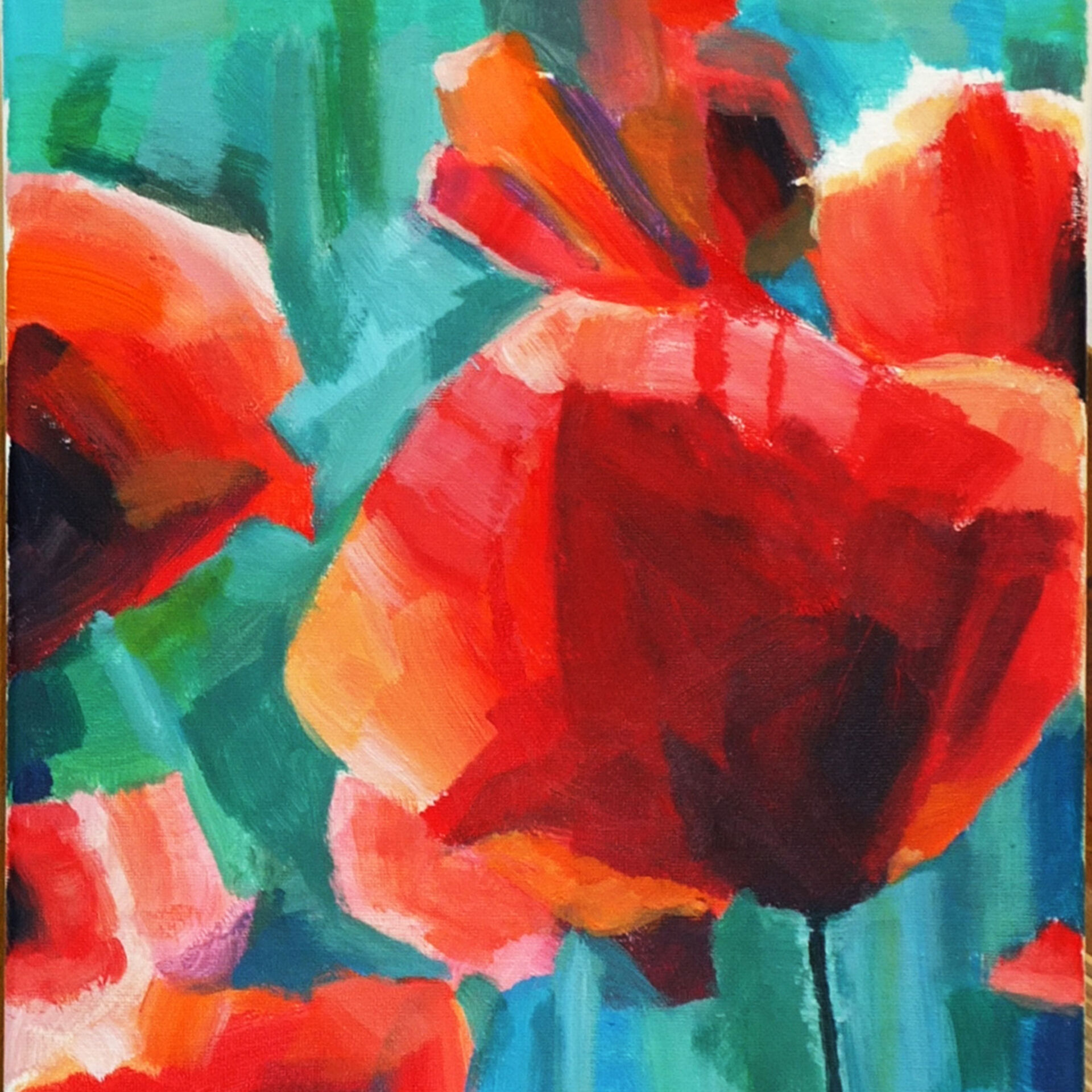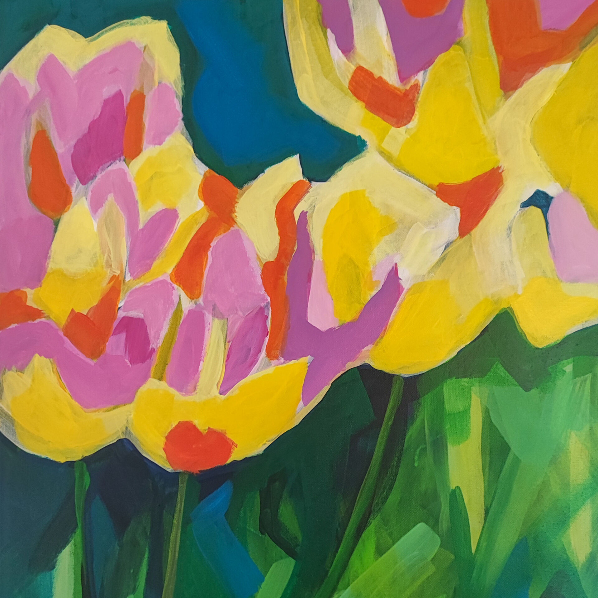 Nicht artig, sondern mit Begeisterung nehmen wir die Blumen-Motive zum Anlass, uns verschiedene Zugänge zur Abstraktion anzueignen.