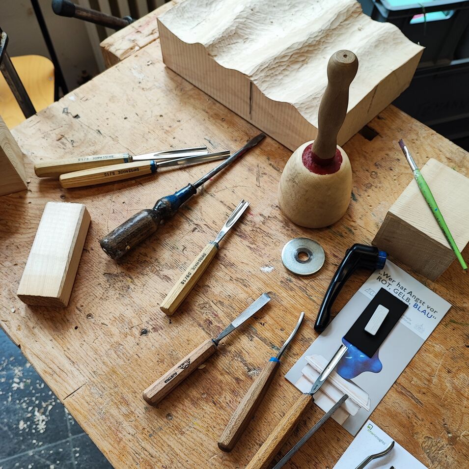 • Schleif-Maschine für Schnitz-Eisen und andere Tischlerei-Maschinen vor Ort dürfen nur von der Kurs-Leitung benutzt werden.
