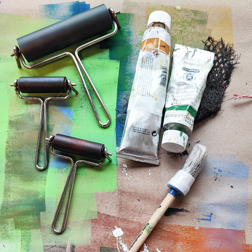 In diesem Kurs kannst du nach Lust und Laune ausprobieren, wie Farbe auf die Druck-Platte aufgetragen, verändert oder wieder weggenommen wird. Schicht für Schicht entsteht so dein ganz eigenes, einzigartiges Bild.
