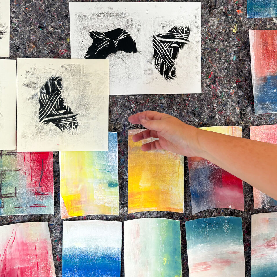 Aus den entstandenen Unikaten kannst du am Ende kleine Serien oder ein Leporello gestalten – ein gefaltetes Kunst-Objekt, das deine druck-grafische Entdeckungs-Reise zeigt!